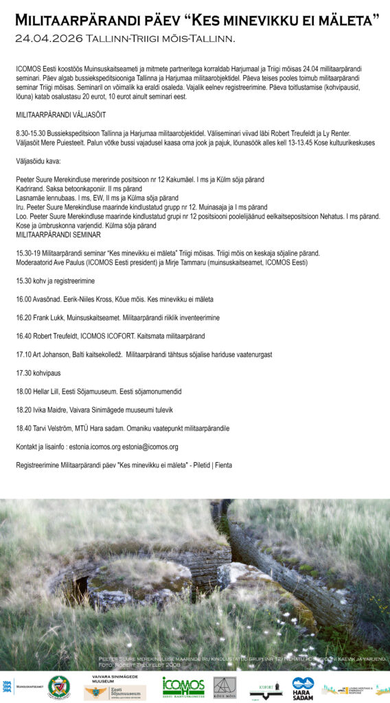 ICOMOS Estonian NC, in cooperation with the Estonian Heritage Board and several other partners, is organizing a military heritage seminar in Estonia, in the capital Tallinn, and Harju County on 24.04.2026.